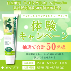 “目覚めてすぐキスできる”恋する♡ハミガキ『デンティス』日本限定「レモングラス」フレーバーが累計販売個数50万個(※1)突破!~限定50名体験キャンペーン開催~