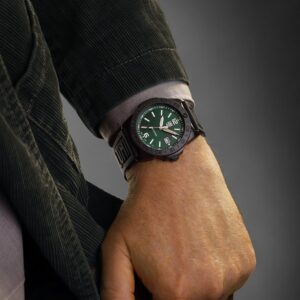 針やインデックスに採用されている【ルミノックス・ライト・テクノロジー】は、自己発光システムのため、外部光や充電を必要とせず最長25年間発光するため、通常の如何なる時も瞬時に計時できる視認性を誇る不可欠なツールとなっています。
