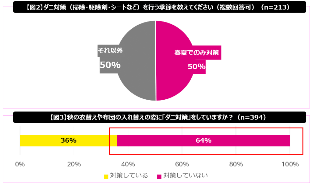 ■ 秋の衣替えや布団の入れ替え時にダニ対策をしていない人は64%。季節の変わり目に見えない秋冬も生き残る“隠れダニ”を放置してしまう生活習慣が浮き彫りに。